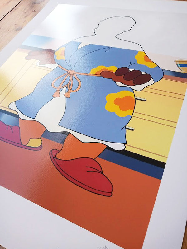 Archival giclée print with silkscreen varnish layer, from an original painting by the artist